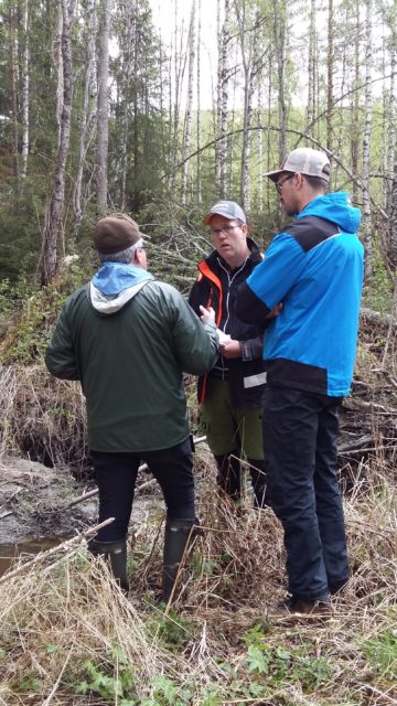 Två man från Vattenfall diskuterar här med André Själanders (Själanders Åkeri). Projektansvariga Lill Wiklund tar bilderna.